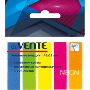 Закладки-стикер пластик самоклеющиеся 45*12мм 25л 5цветов неон(10)