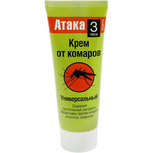 ОписаниеКрем от комаров "Атака" надежно защитит Вас и Вашу семью от укусов комаров, москитов, мокрецов и других насекомых. Средство удобно в применении, обладает приятным запахом, подходит для взрослых и детей от 5 лет. Время защитного действия от насекомых до 3 часов.