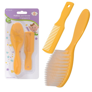 ОписаниеНабор расчесок поможет ухаживать за волосами малыша с самого рождения. Мягкая щетинка щеточки массирует кожу, улучшает кровообращение, не царапает и не вызывает аллергии. Гребешок с безопасными зубцами бережно расчесывает волосы, не доставляя малышу дискомфорта. Набор подходит для новорожденных и детей постарше.